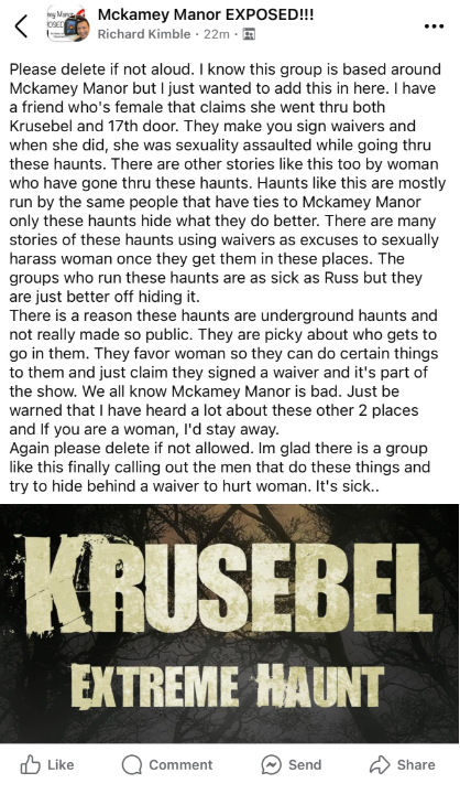Under his alt “richard kimble” justin whines, cries and accuses a perfectly respectable haunt of despicable behavior because he was too much of a coward to even show up. His accusations are completely untrue and the thousands that attend this haunt can attest to its legitimacy. No wonder he’s been blacklisted at every extreme haunt in this country.